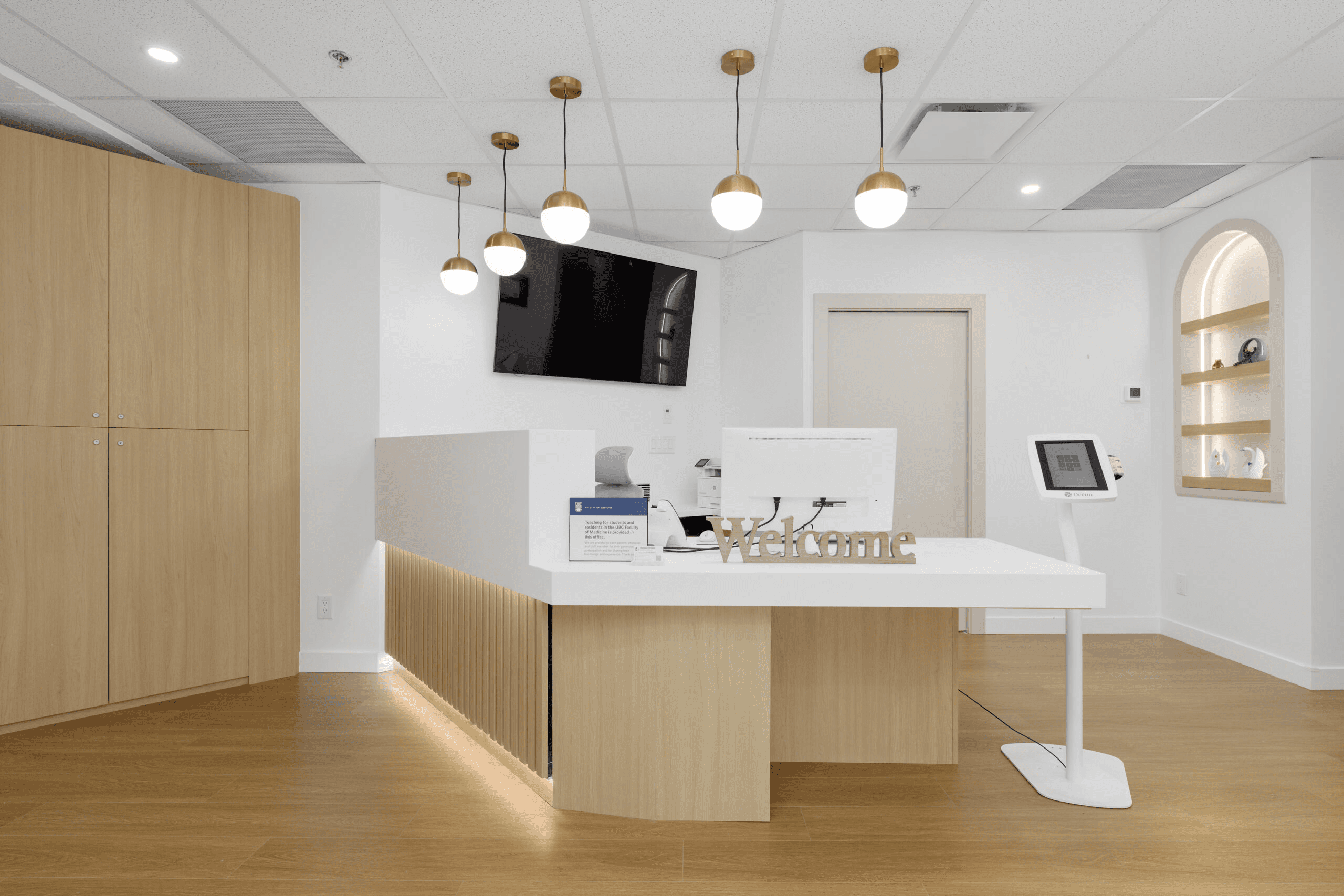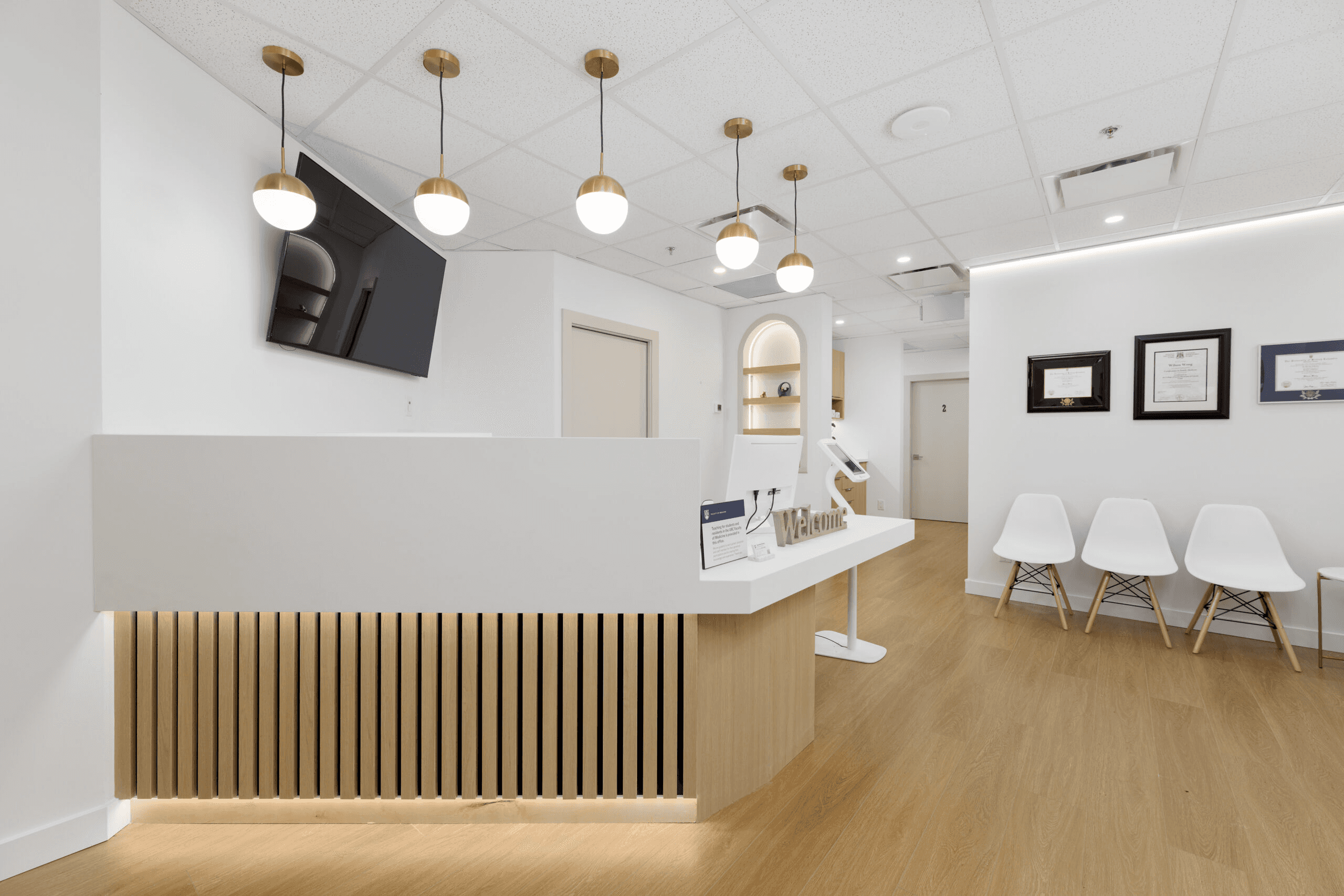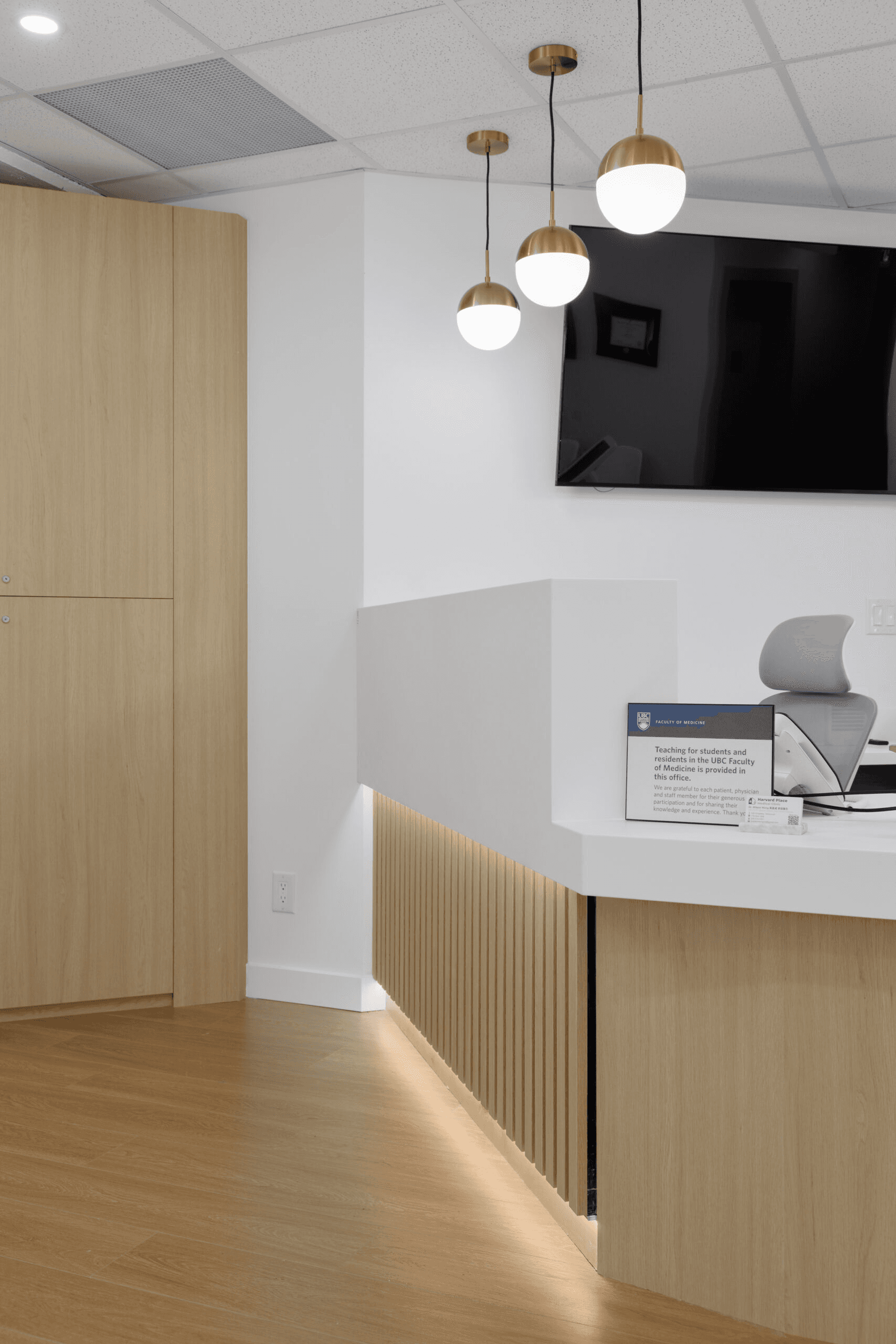 A premium medical facility in the heart of Vancouver where design excellence meets clinical functionality. The reception features ambient lighting, plush seating, and natural finishes that reduce patient anxiety on arrival. Exam rooms integrate state-of-the-art equipment seamlessly into the décor. Traffic flow patterns minimize congestion between clinical and administrative zones. Contemporary millwork and curated furnishings position Harvard Place as a top-tier healthcare destination.