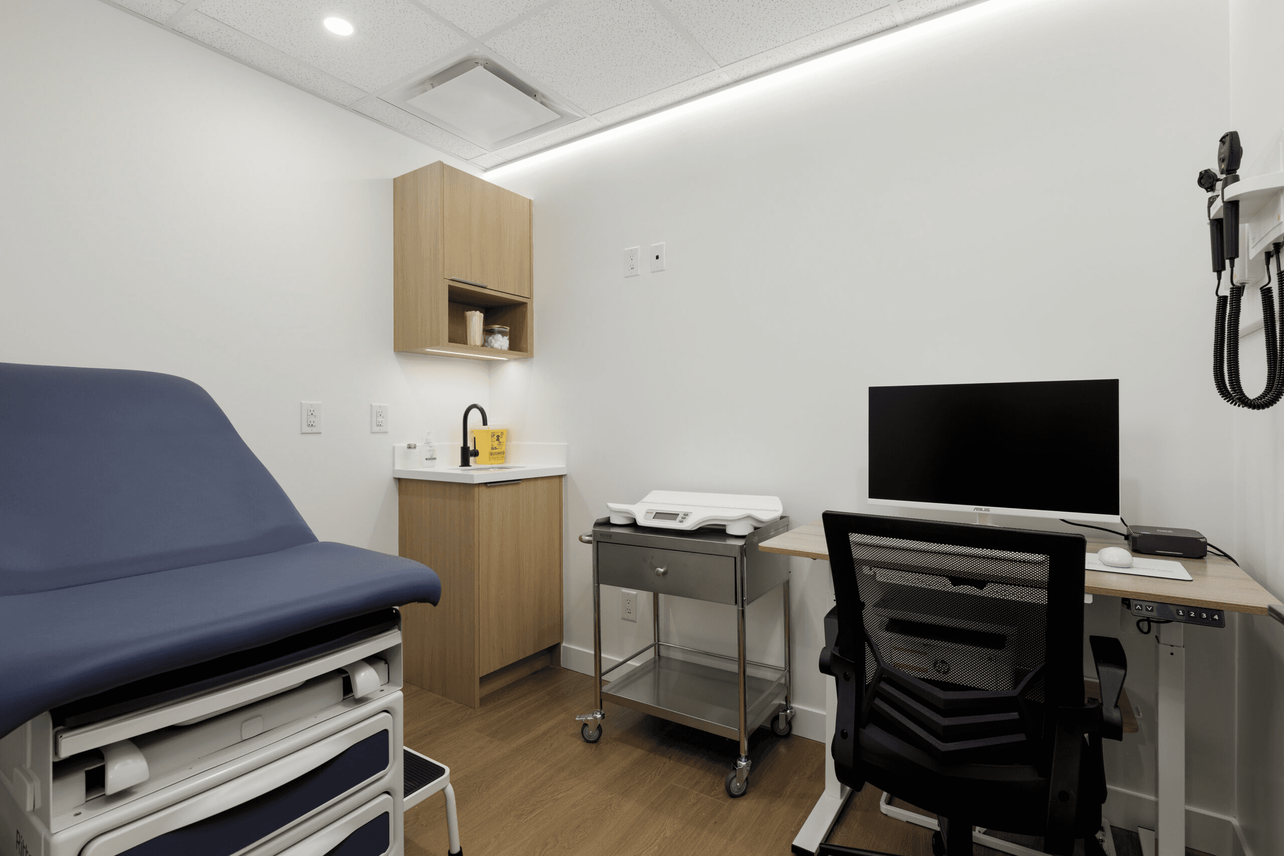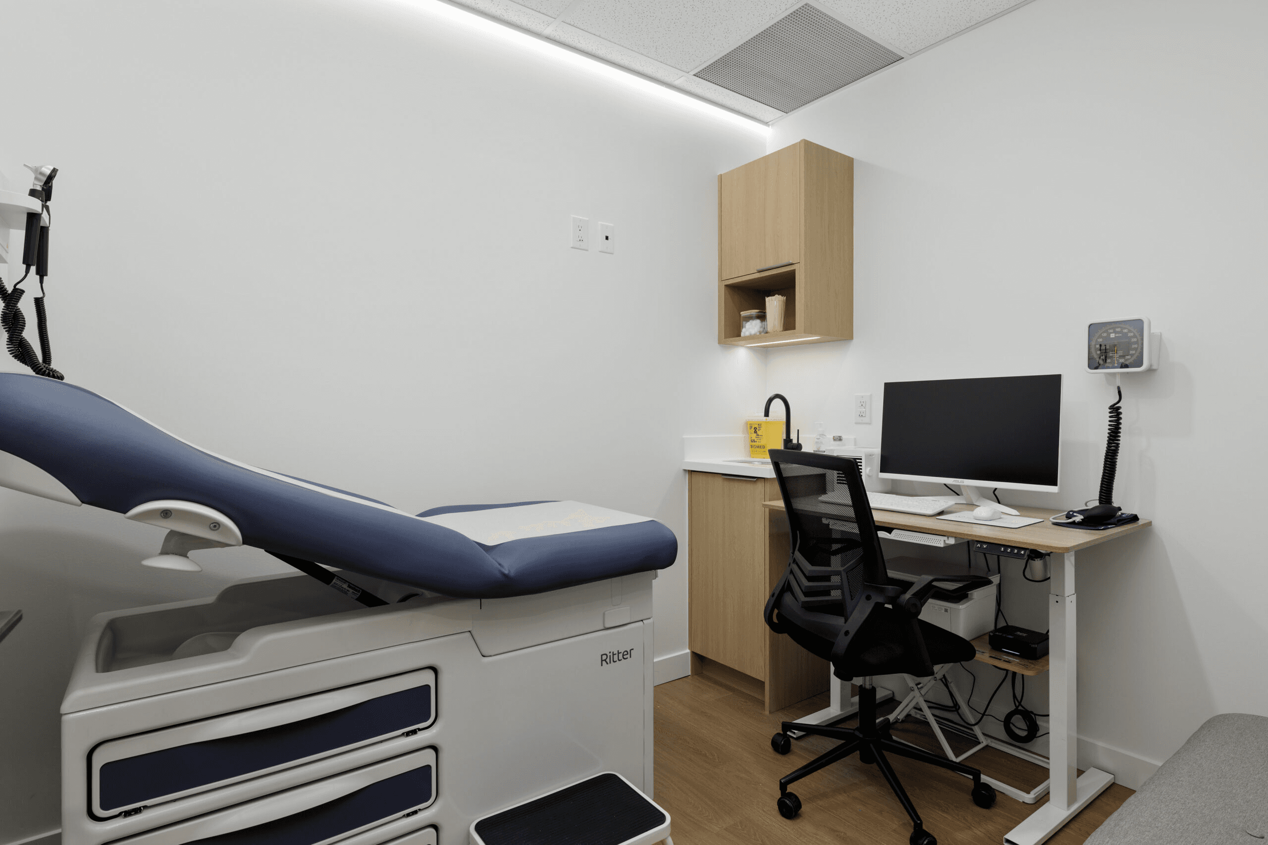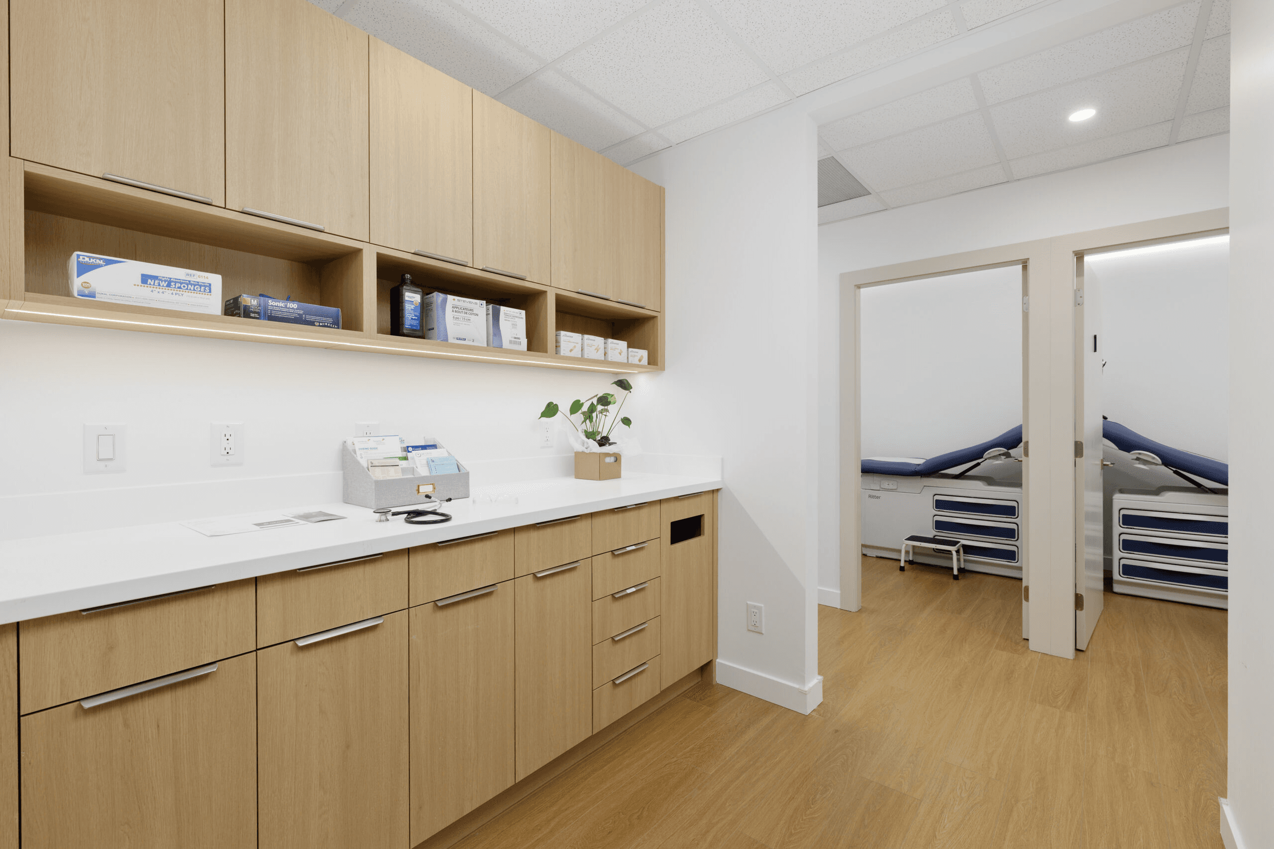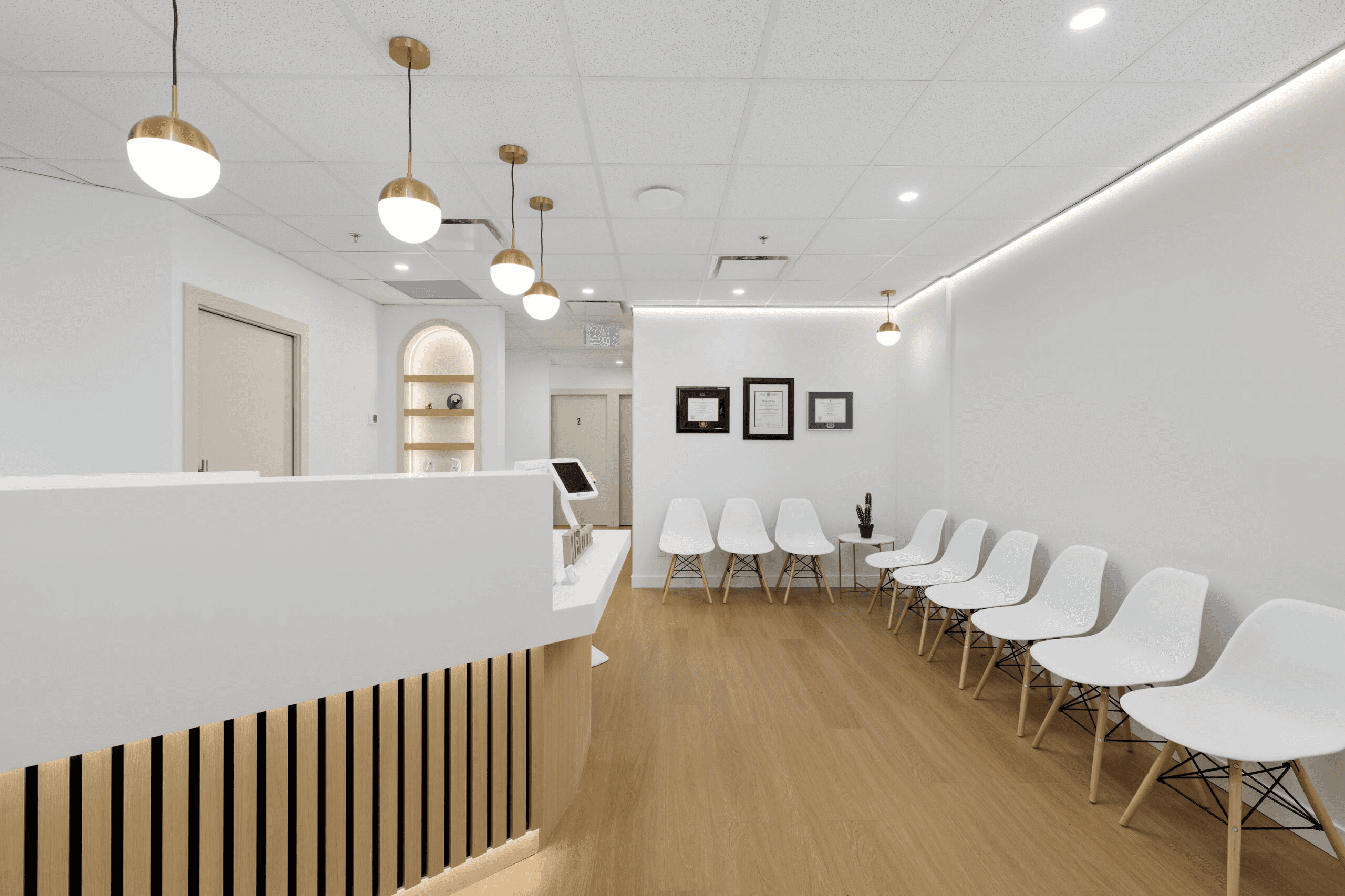 A premium medical facility in the heart of Vancouver where design excellence meets clinical functionality. The reception features ambient lighting, plush seating, and natural finishes that reduce patient anxiety on arrival. Exam rooms integrate state-of-the-art equipment seamlessly into the décor. Traffic flow patterns minimize congestion between clinical and administrative zones. Contemporary millwork and curated furnishings position Harvard Place as a top-tier healthcare destination.