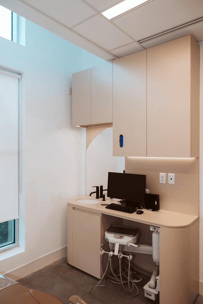 Smile Plus Dentistry is a 2,840 sqft dental clinic designed and built to redefine the patient experience from the moment of arrival. Located in Surrey, BC, the clinic greets patients with a sculptural fluted reception desk, warm Edison-style pendant lighting, and indirect LED accents that set a welcoming, non-clinical tone.